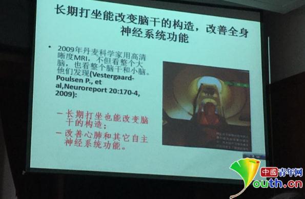 朱清時表示,長期打坐可以改變腦干結構。中國青年網圖為什么人們一直未能通過科技手段來觀察到“真氣”呢?朱清時提供了兩點解釋。“離開神經系統(tǒng)不可能看到它;觀察神經元運行的隊列,還需要新的科學實驗方法?!?