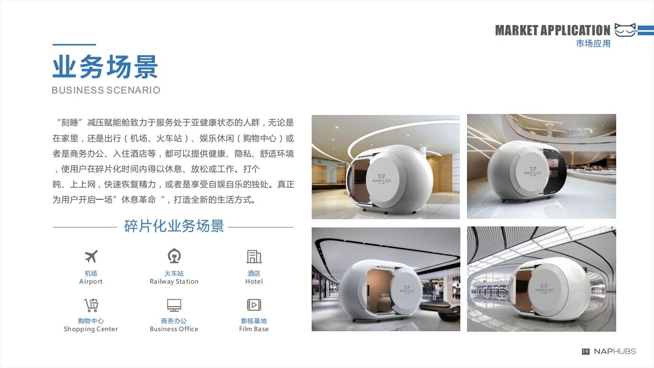 “睡一會(huì)”可放置在商場(chǎng)、機(jī)場(chǎng)、酒店、景區(qū)、辦公大樓等場(chǎng)所。休息艙不僅適用的場(chǎng)景比較廣泛,還可以碎片化布局,靈活設(shè)置所在位置,為用戶提供便捷的“補(bǔ)覺(jué)”場(chǎng)所,讓短時(shí)休息更加舒適溫馨。